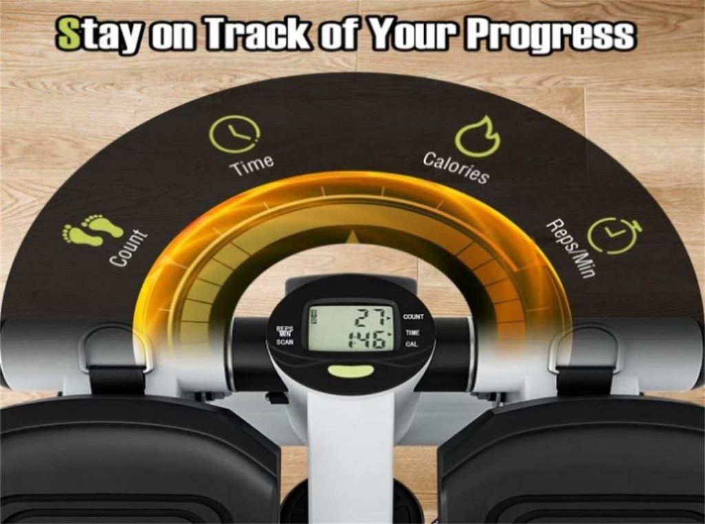 • Monitor Your Progress Effortlessly: You can stay motivated and track your workout metrics with a clear and easy-to-read display of this hydraulic fitness stepper that records your count, time, calories and reps/min. With this information at your fingertips, you can set realistic goals, track your improvements and celebrate your achievements every step of the way.