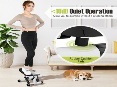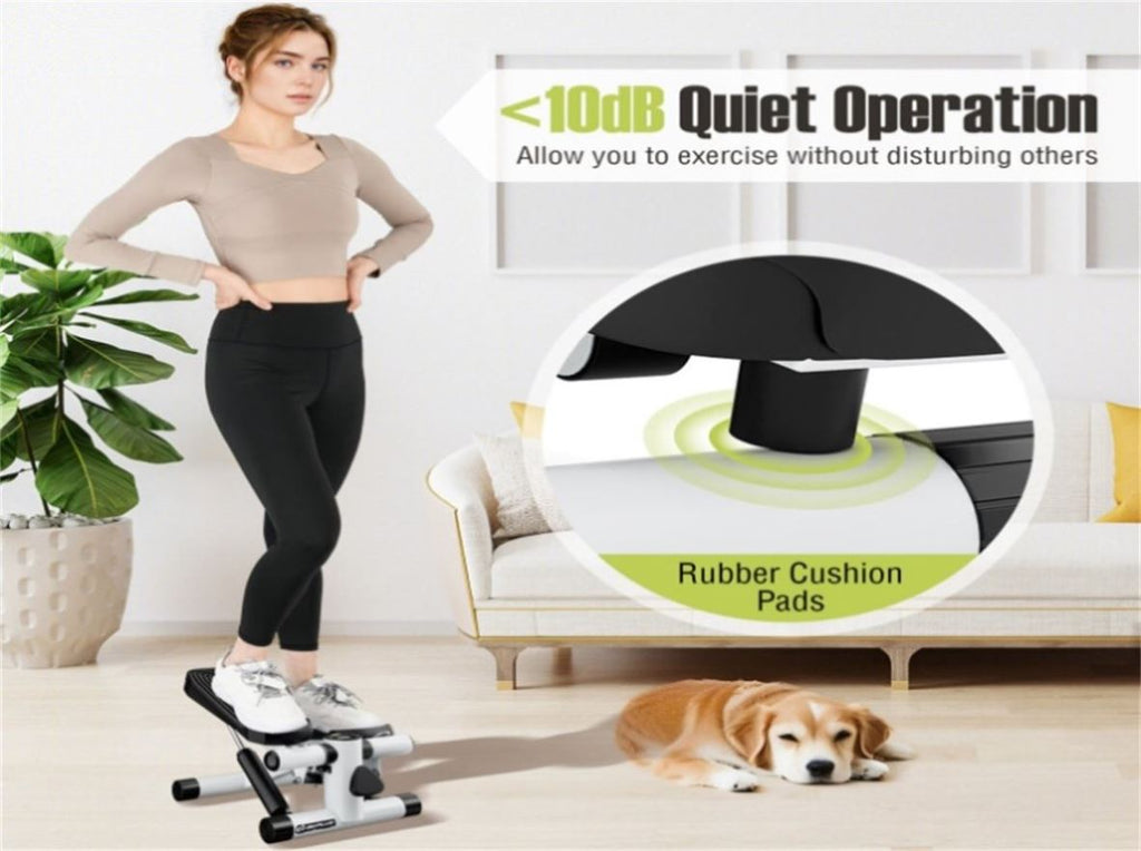 • Quiet and Smooth Performance: Equipped with high-quality hydraulic cylinders, this step exercise equipment operates under 10dB, ensuring the tranquility of silent workouts. With rubber cushion pads beneath the pedals, you're assured of a stable and quiet workout session, making it ideal for any time of the day or night without disturbing others.