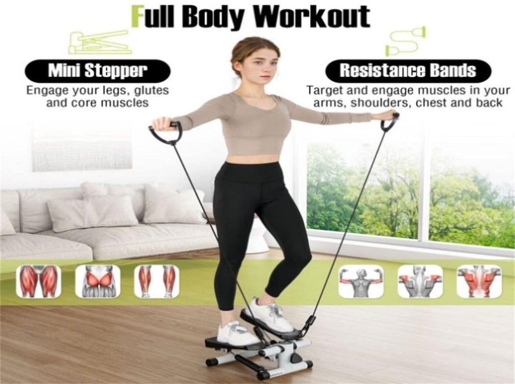 Mini Full Body Stepper - Resistance Bands Included, Adjustable Intensity, LCD Tracker 10781307