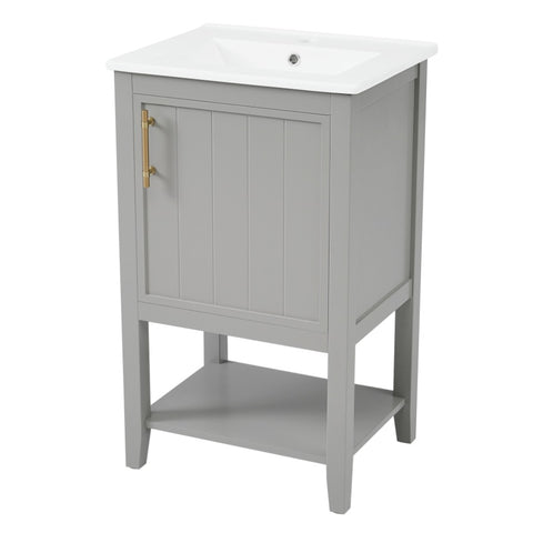20" Bathroom Vanity with Sink, Bathroom Cabinet with Soft Closing Door, Storage Rack and Open Shelf, WF308492AAE