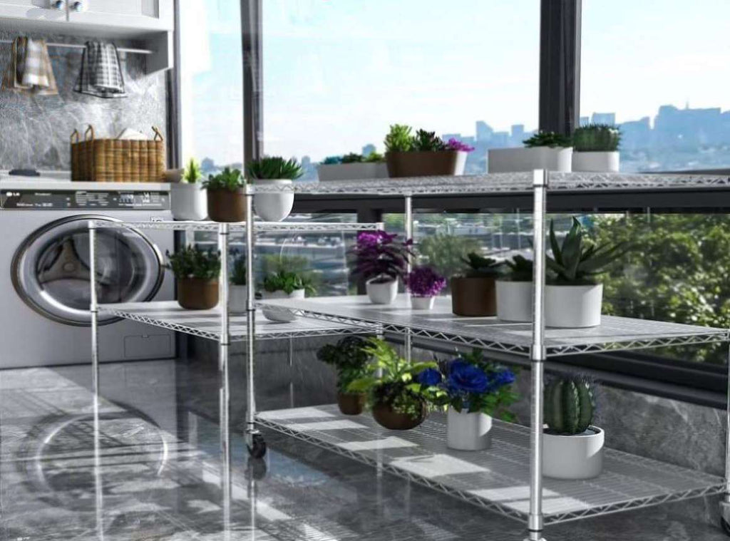 Wire rack on wheels can be easily positioned in supermarkets, garages, closets, kitchens, porch, pantry, etc. Height-adjustable leveling feet can be placed on uneven ground- simply twist to stabilize. Non-slip, will not scratch ground. [EASY TO ASSEMBLE] - With detailed instructions and no tools required, you can install it easily with another person within 15 minutes. There are many parts in the package, please feel free to contact us via buyer message if meet the case of missing parts and asse