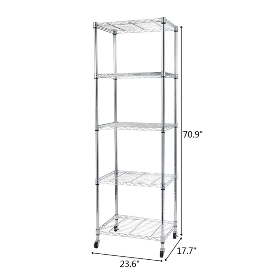 5-Tier NSF Heavy Duty Adjustable Storage Metal Rack with Wheels & Shelf Liners Ideal for Garage, 27377485