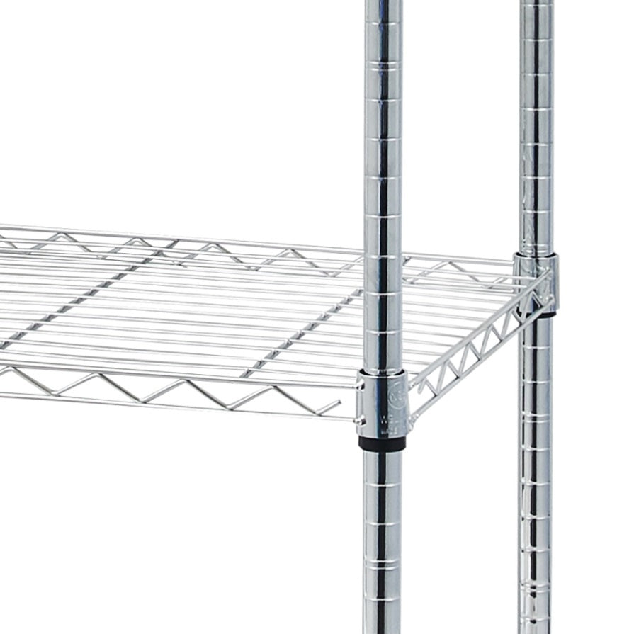 Store more the professional way with this UltraDurable steel wire shelving. This heavy-duty steel wire storage system is designed for quick and easy assembly with no tools required. Simply screw the poles together, attach wheels or feet, and clip the shelves on to finish. The shelves are made with solid steel wire and thick (1" diameter steel poles) finished in chrome for true commercial-grade storage. These units are listed by the NSF for dry storage and heated environments only. Store more and save space with us today!