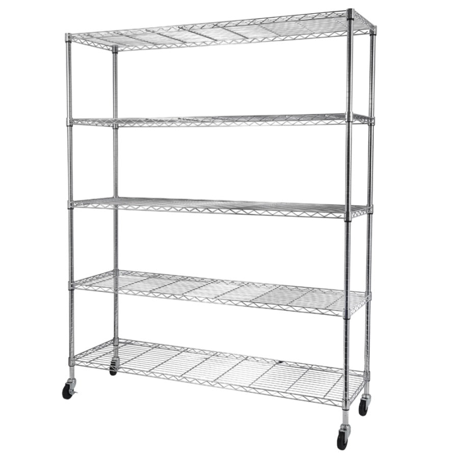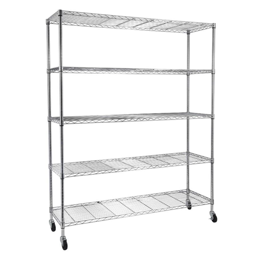 1. 59" x 17.7" UltraDurable Commercial-Grade Shelves - Includes 5 solid-steel wire shelves with triple-truss support and 4 steel poles for heavy-duty multipurpose storage