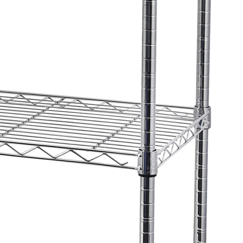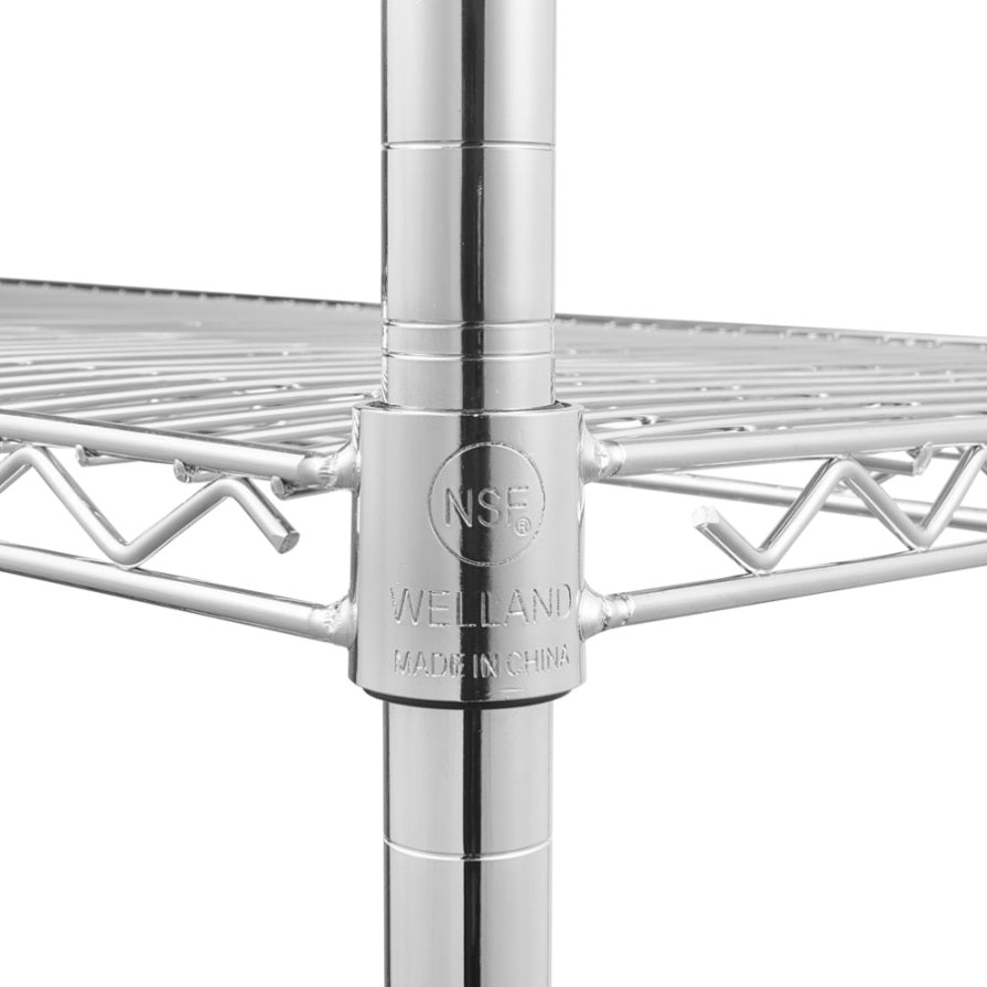 Store more the professional way with this UltraDurable steel wire shelving. This heavy-duty steel wire storage system is designed for quick and easy assembly with no tools required. Simply screw the poles together, attach wheels or feet, and clip the shelves on to finish. The shelves are made with solid steel wire and thick (1" diameter steel poles) finished in chrome for true commercial-grade storage. These units are listed by the NSF for dry storage and heated environments only. Store more and save space with us today!