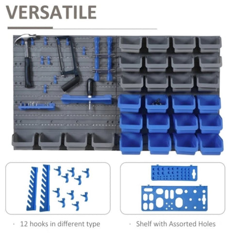Blue wall mounted tool storage rack kit with storage box 07728243
