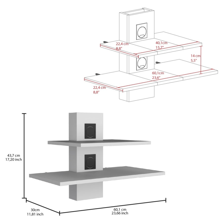 Burgos Floating Shelf, 2 Tier-Shelf Wall Unit with Cable Management B200P173214