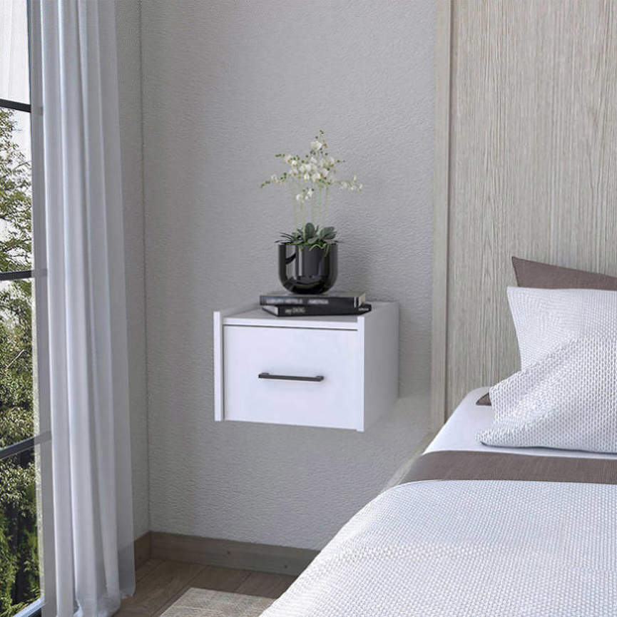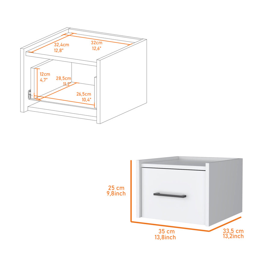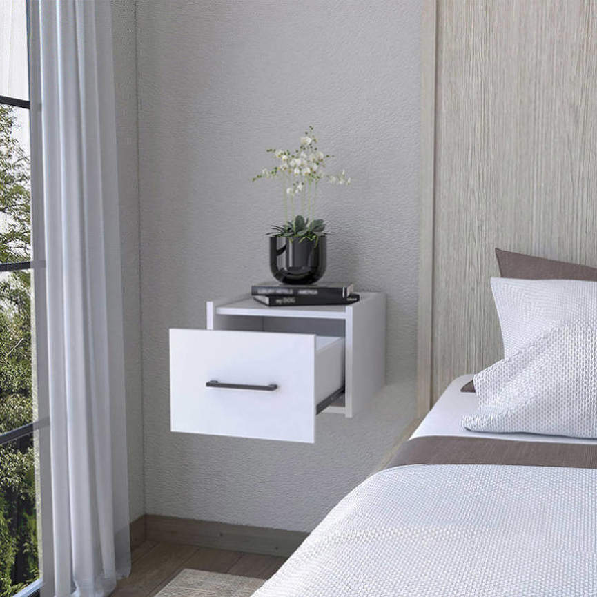 Elfrida Wall-Mounted Nightstand, Sleek Single-Drawer Design with Spacious Top Shelf