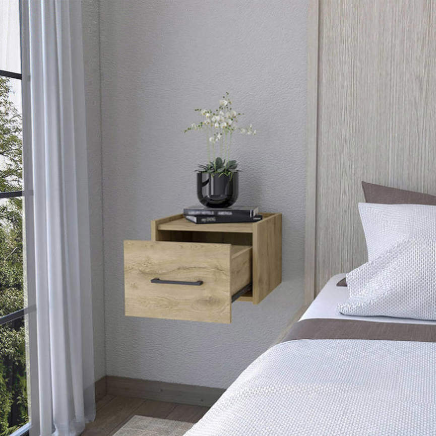 Elfrida Wall-Mounted Nightstand, Sleek Single-Drawer Design with Spacious Top Shelf