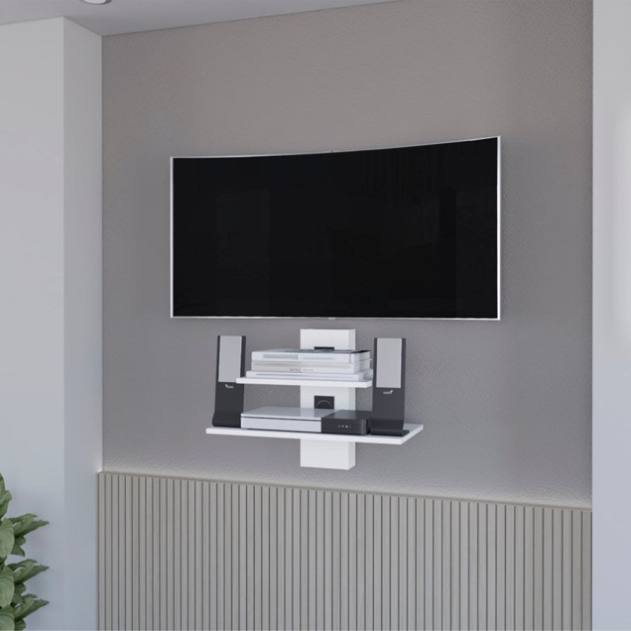 This floating shelf revolutionizes wall storage with its contemporary and minimalist flair. Featuring two expansive shelves, this floating shelf provides a chic display area for your decorations, media equipment, or controllers, complete with cable management holes and covers for a tidy setup.