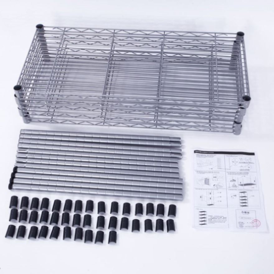 You can finally get a well-assembled rack for daily storage! This XM-304B Rectangle Carbon Steel Metal Assembly 5-Shelf Storage Rack we offered here is really of great quality, for the adoption of premium carbon steel & PP materials as well as fine workmanship. It is composed of 5 shelves, top tubes, middle tubes, bottom tubes and clamping pieces for easy installation. Surrounding edge of this rack could avoid any drops of stored items. And it is designed with adjustable height and rack legs for satisfying you! What a practical and convenient item!