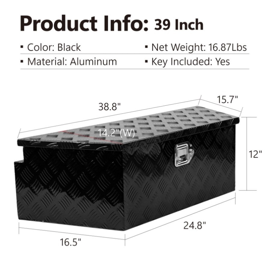 Quality Materials: This Aluminum Tool Box is characterized by high-intensive & corrosion-resistant; Weather-resistant over - lapping lid design, preventing any undesired leakage; Durable: High quality and durable appearance make the Trailer Tool Box rarely needed to repair.
