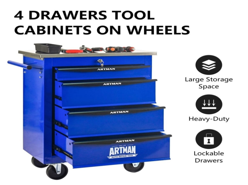 4 Drawers Multifunctional Tool Cart with Wheels,Metal Rolling Tool Cart Storage for Garage Workshop W1102P298224