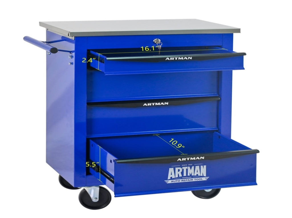 With swivel casters could maneuver easily around work area. The wheels have locking mechanisms to prevent the tool cabinet from moving around on its own while in use.