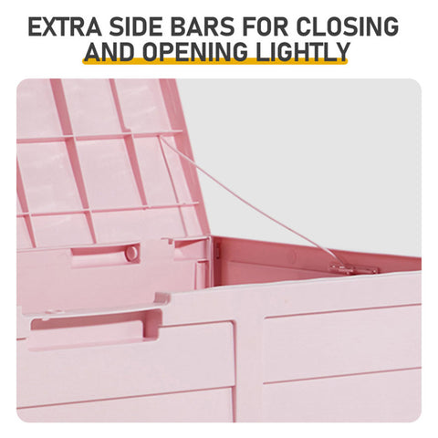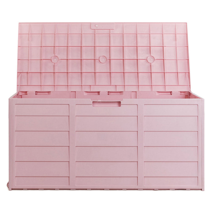 Do you want a great storage solution for your garden or garage? An instant solution for outdoor storage allowing you to store, cushions, tools, toys, garden equipment and other items safe, secure and dry for a clutter-free garden. An ideal outdoor addition to any garden for those who like their storage solutions both elegant and practical. Our storage box is built out of a low maintenance durable plastic to keep items such as patio accessories and chair cushions dry and ventilated as well as provide full weather resistance.This box is an ideal storage solution for your garden essentials such as garden tools, cushions, outdoor toys etc. Easy to assemble with no tools required, it is manufactured from a durable weather-resistant plastic construction which is UV resistant & has moulded side handles for easy portability. It is also lockable with an integral padlock hasp for added security (padlock not included).