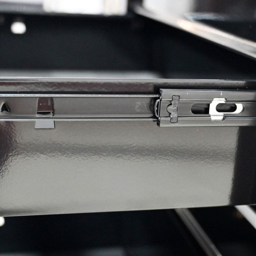 The opening and closing of the drawers of the tool cabinet is very gentle thanks to the ball-bearing drawers