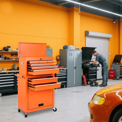 Spacious and Organized Storage: Featuring 8 drawers of varying sizes, including 3 small drawers and 5 large drawers, this tool cabinet offers ample storage capacity for organizing and securely storing a wide range of tools, keeping your workspace tidy and efficient.