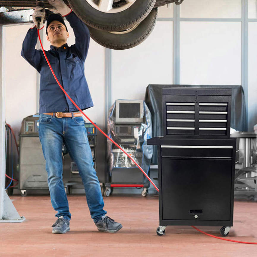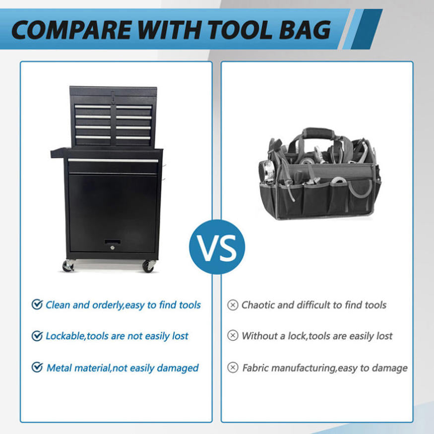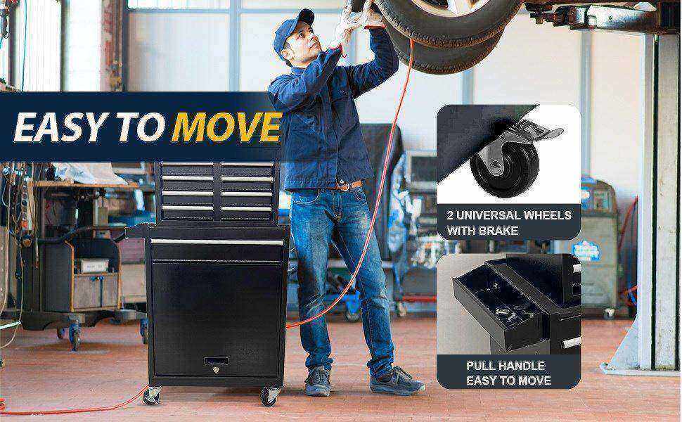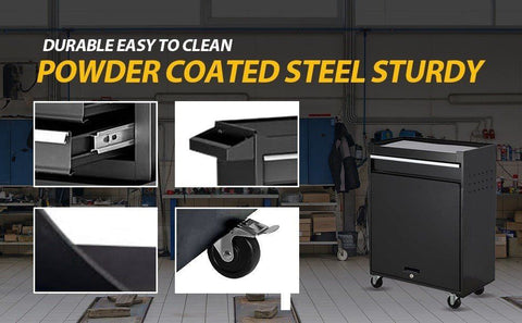 UNIVERSAL & LOCKABLE WHEELS. 4 universal wheels make it easy to move the rolling tool chest around. What's more, 2 of the wheels are lockable to ensure that the tool box stays in place.