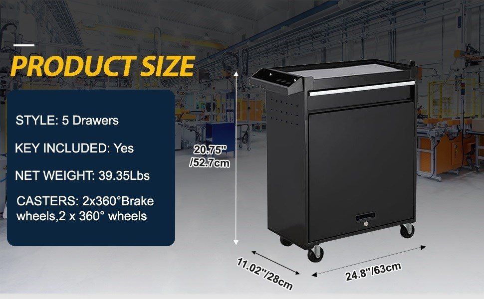 Tool Chest,5-Drawer Rolling Tool StorageCabinet with Enhanced Packaging, DetachableTop Tool Box, W2277P243713