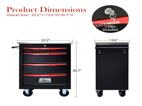 4 Drawers Multifunctional Tool Cart with Wheels,Metal Rolling Tool Cart Storage for Garage Workshop W1102P245246