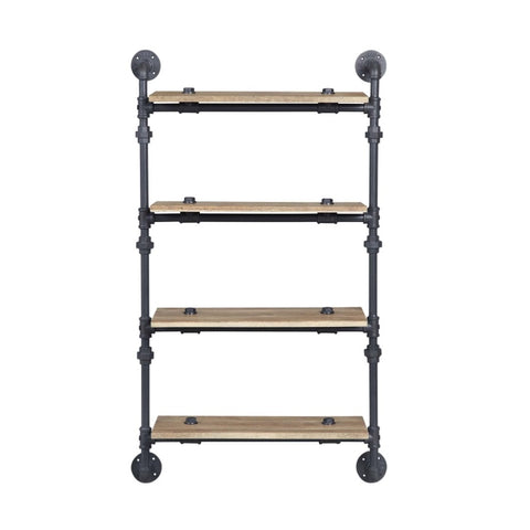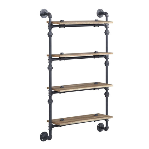 4 Tier Wall Shelf with Metal Tube, Oak and Sandy Black B016P324181