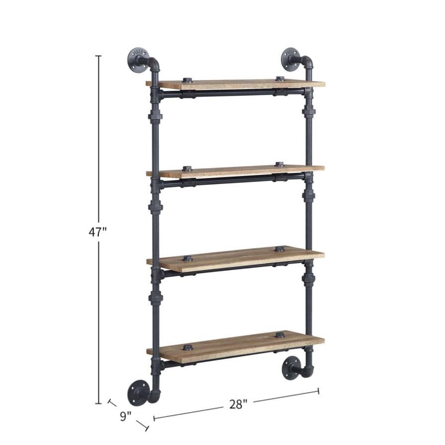 Add a touch of farmhouse industrial with the pipe wall shelf. Ideal for any room in the home. Great for exhibiting wall decor and as a stylish storage display. Providing spacious storage and decor to keep your home or office clean while adding an industrial style. Take your storage space to new lengths with this wall shelf.