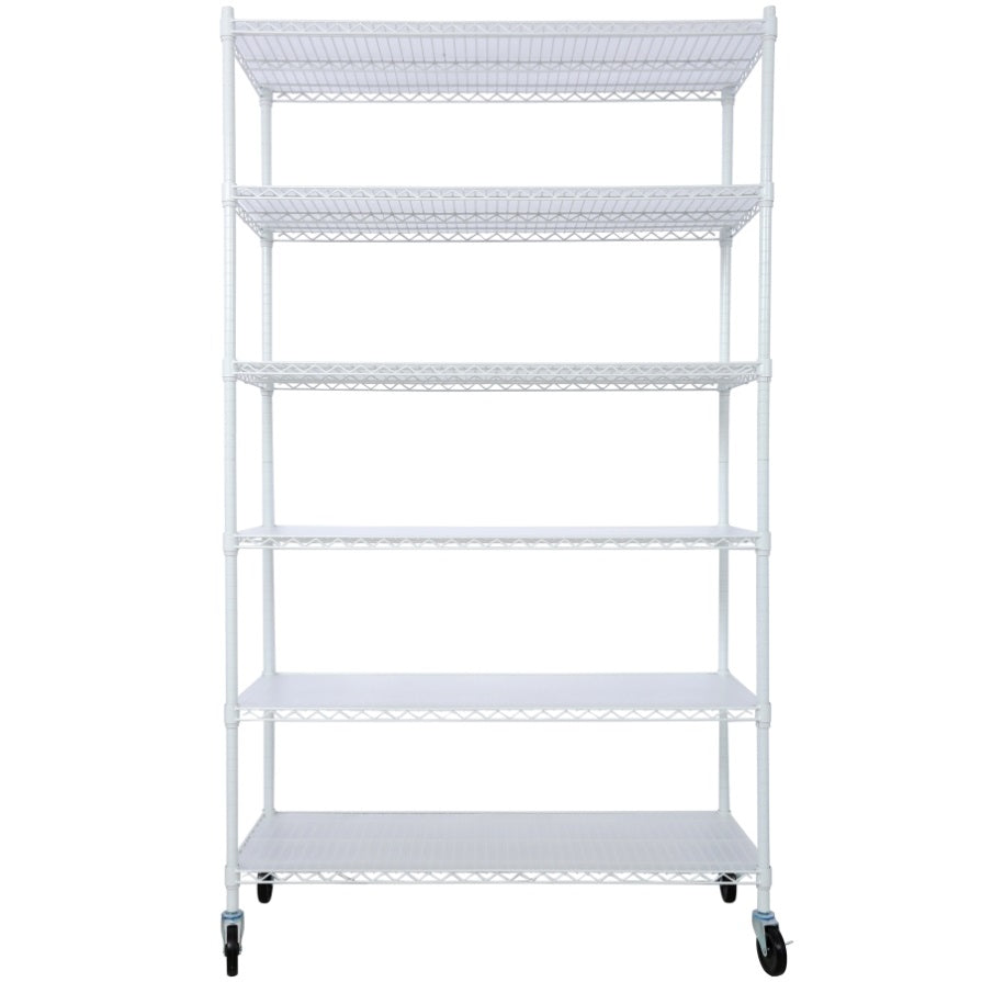Heavy-Duty 6 Tier Shelving: Our wire shelving unit features 6 tiers with a large capacity, each shelf capable of holding 1000lbs, for a total maximum load capacity of 6000 lbs. The heavy-duty design ensures stability, with the bottom shelf recommended for heavier items. Additionally, the choice of beautiful and fun transparent colors for the 6 shelf liners allows you to add a pop of color to your space, and they are waterproof, ensuring they won’t get damaged from exposure to moisture.