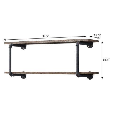 Antique Oak and Sandy Grey 2-Tier Wall Shelf B062P184601