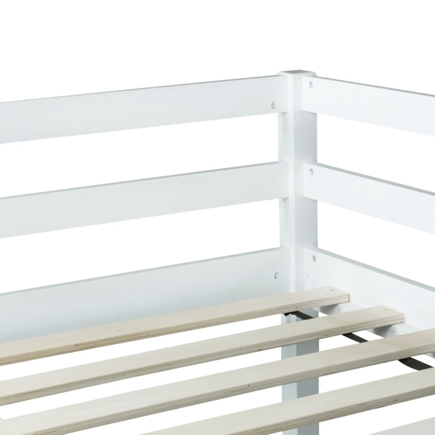#3 [Safety and Quality Guaranteed]This loft bed is crafted mainly from premium rubber wood, providing lasting sturdiness and durability. The loft bed is constructed with firmly secured structure, with a central strengthened support slat, forging strong stability that ensures the safety of users while resting in the loft bed. The high guard rails surrounding the loft bed will further protect users from falling off the bed.