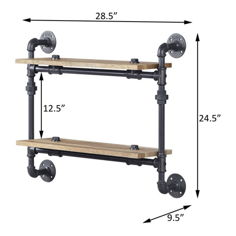 Effortlessly combine functionality and industrial flair with this wall rack featuring two-tiered shelves supported by a sturdy metal frame crafted in a distinctive water pipe style. Perfect for organizing essentials or displaying decor, this rack offers a stylish solution for maximizing vertical storage in any space.