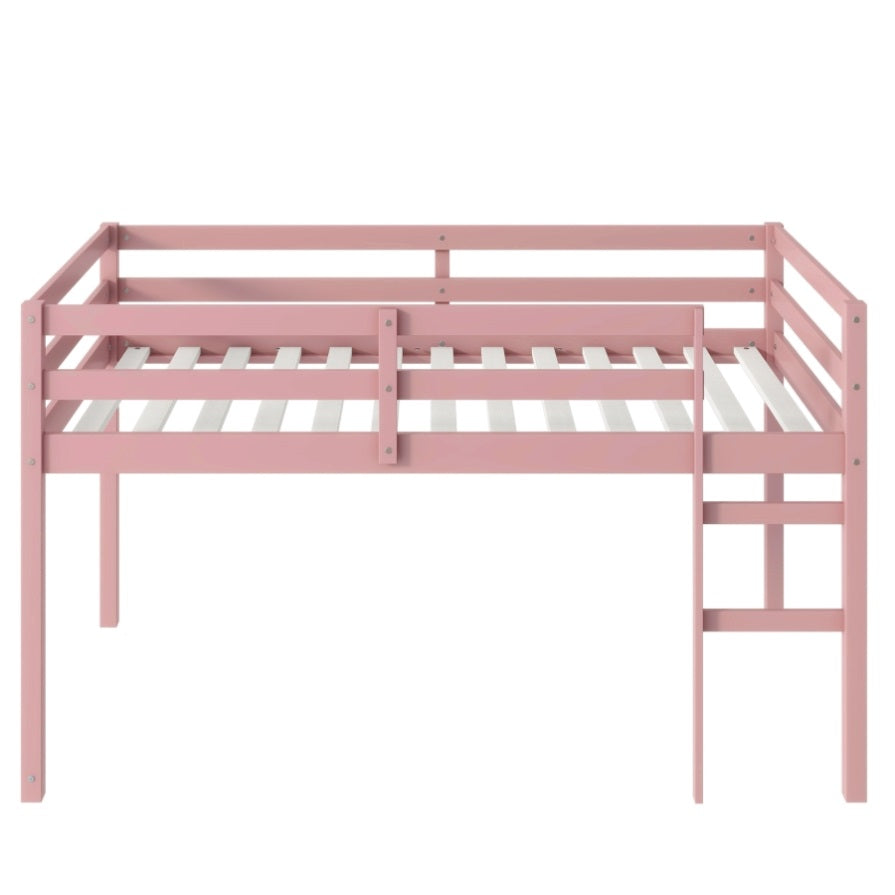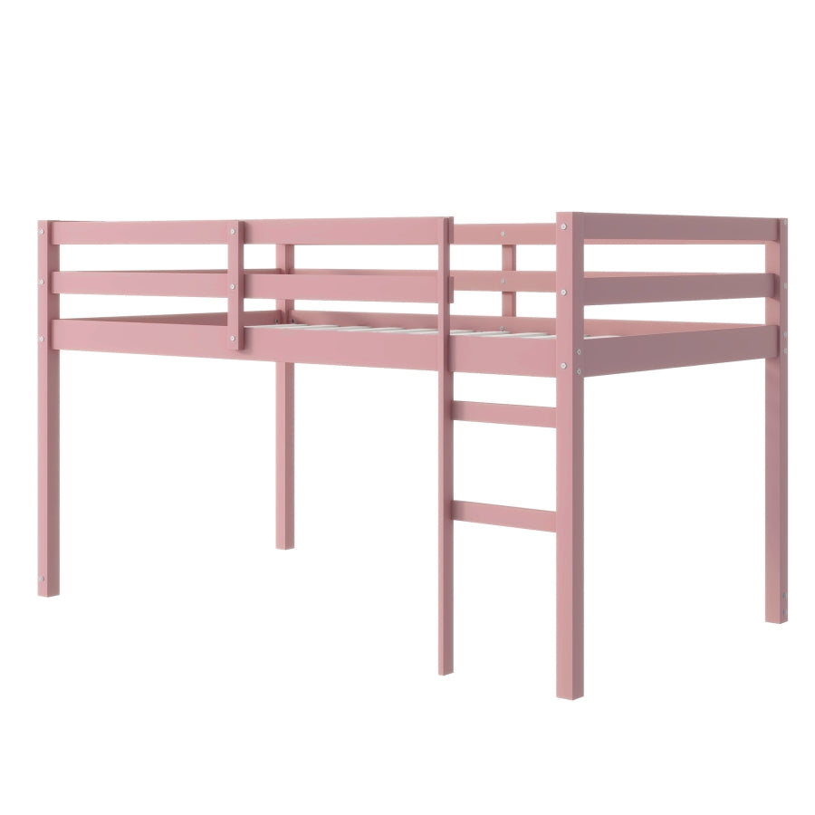 Solid Wooden, Rubber Wooden Twin Loft Bed with Ladder, Bed Platform of Strengthened Slats, Pink W504P190960