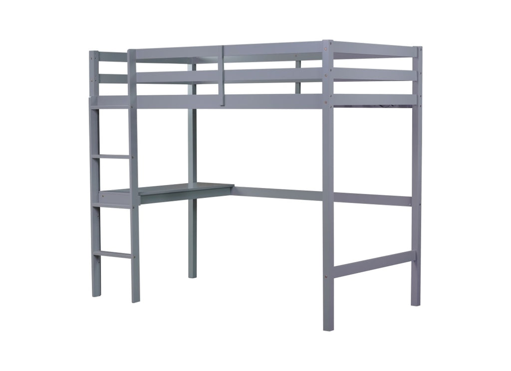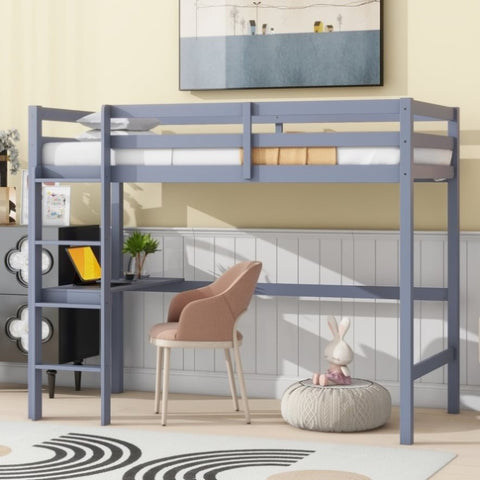 Twin High Loft Bed, Rubber Wood Loft Bed with Safety Guardrail, built-in desk, ladder,Grey W504P206978