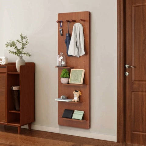 [Multi-functional design] : This wall-mounted shelving full-length mirror is both a wall decoration and a functional accessory. The full mirror design has a separate display stand and hook position, you can adjust the display stand and hook position as needed to help you quickly organize your items.