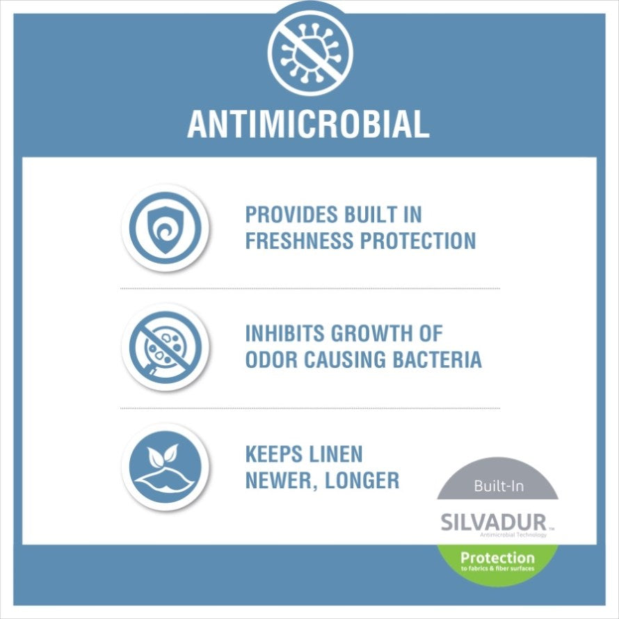 Dupont silvadur anti-microbial treatment for health and wellness - provides odor control, prevents bacteria buildup, enhances hygiene, and extends product life by keeping linen fresher, longer
