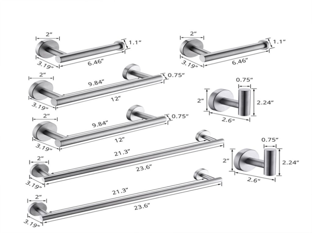 8-Piece Kit- 24 inches towel bar,toilet roll paper holder, robe hooks. One complete towel hanger set meet all your need in daily life.