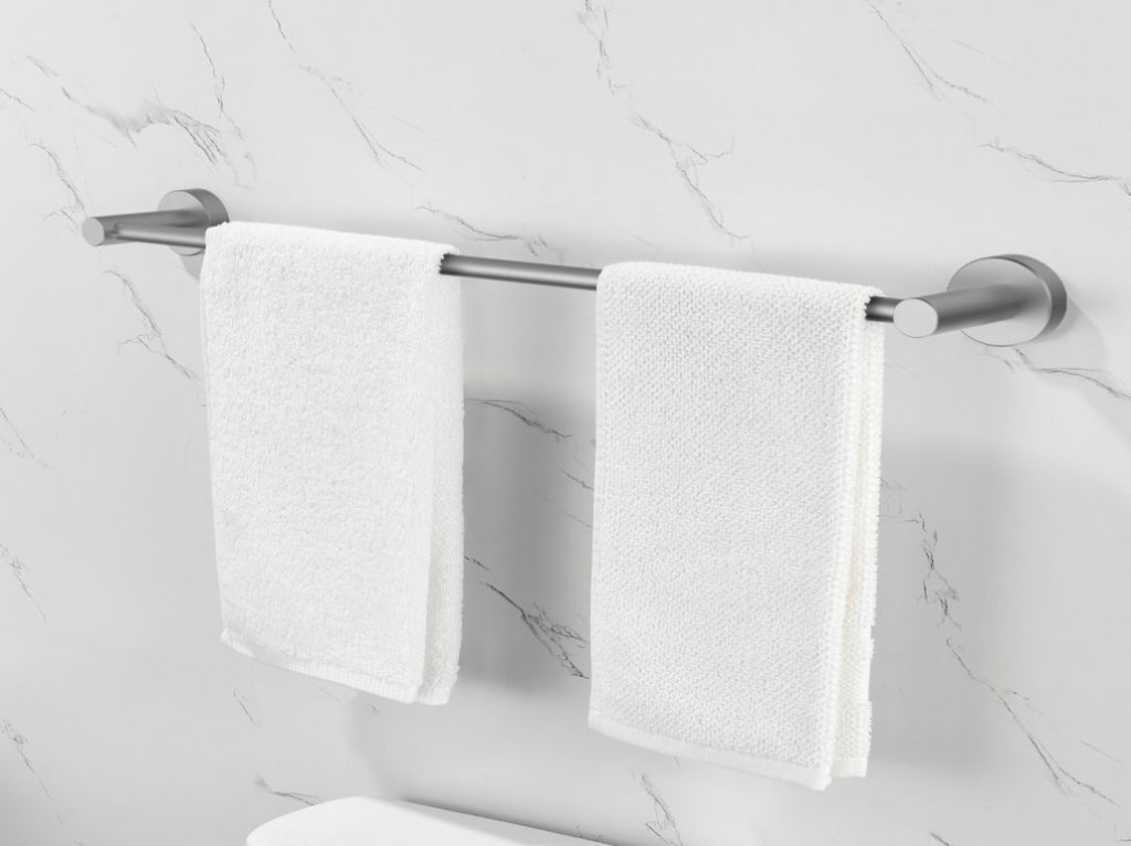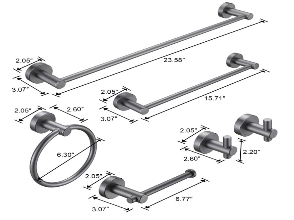 6-Piece Tower Bar Set for Any Bathroom Decor Presenting modern and sleek look, 6pcs bathroom accessory set offers concise and generous style to your house. Towel Bar Set for you get rid of countertop clutter, organizing towels, clothes and robes in order. Make fully use of the space of wall, much more space and more practical on wall.