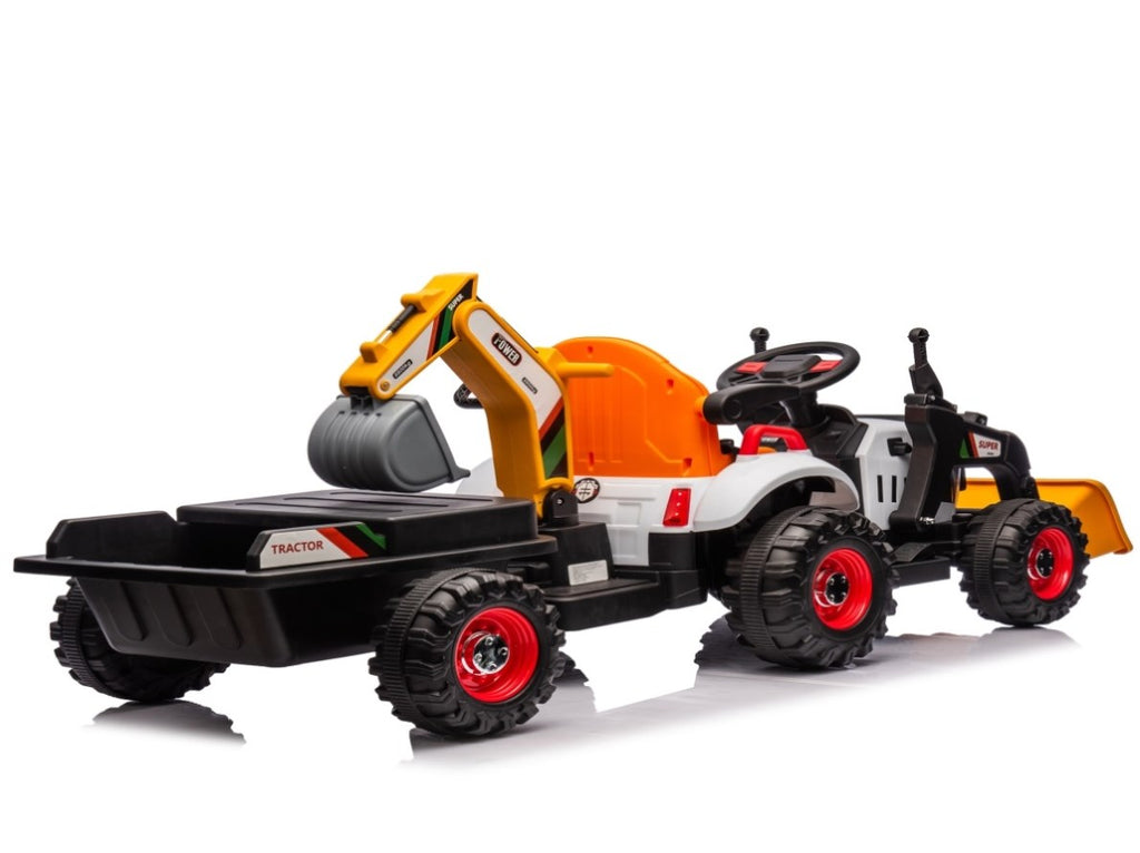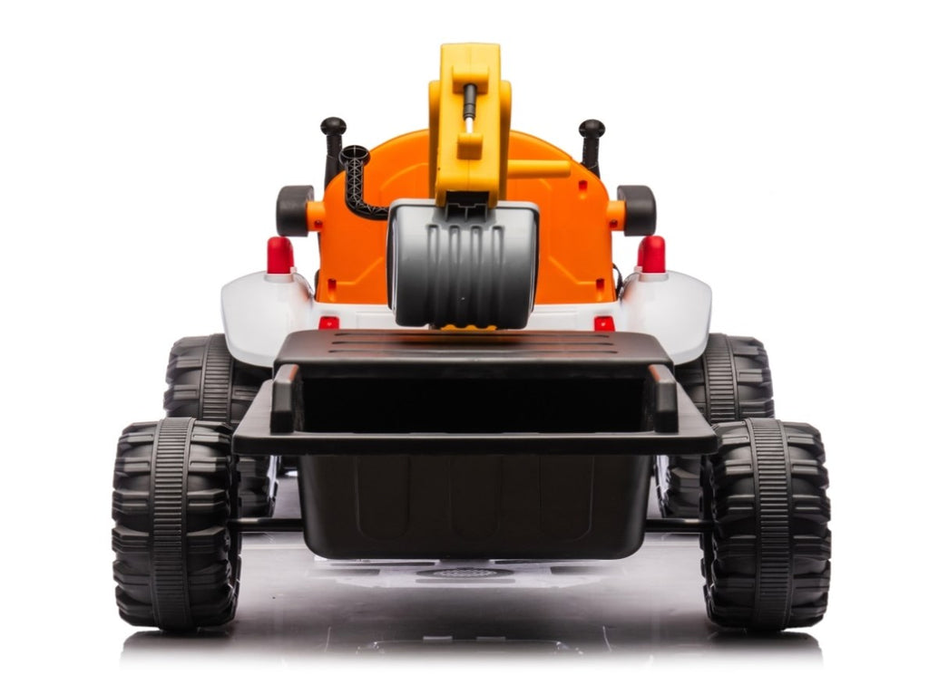 Swivel Seat Design Maximize play potential with our 180° rotating seat! Face forward to drive like a little racer, then swivel backward to operate the rear excavator for full construction site action. The intuitive locking system securely holds the seat in both positions, allowing seamless transitions between driving and digging modes. Extra grip handles on both sides give children steady support as they pivot between roles—from speedy driver to construction boss in seconds! Detachable Wagon Meet your child's ultimate adventure companion—the detachable wagon with a clever semi-covered design that perfectly balances protection and accessibility. The removable partial cover shields snacks from sun and rain while preventing sand spills at the beach, yet its open front ensures toys are always within easy reach. Designed with deep walls and rounded edges to keep treasures secure, this wagon rolls smoothly over any terrain with its all-terrain wheels, making park trips, beach adventures, and backyard explorations effortless. Manual Backhoe Lever Unleash your child's inner engineer with our realistic manual backhoe lever! Designed for hands-on fun, this fully operational excavator arm lets kids dig, scoop, and dump just like real construction equipment. The ergonomic handles are perfectly sized for little hands, developing fine motor skills and hand-eye coordination through interactive play. Built with durable, child-safe materials to withstand rigorous sandbox adventures or backyard excavations. Watch their creativity soar as they imagine building sites, archaeological digs, or treasure hunts – no batteries required, just pure imaginative play BATTERY:24V8Ah MOTOR:80W*2 Maximum Load:66.14lbs Car speed:3-5KM/H 1.86-3.6MPH Applicable age: around 5 years old Test standards:ASTM,CPSIA,CPC FUNCTION: Remote Control 3-Speed Adjustment Manual Push Mode LED Lights Built-in Music Player Swivel Seat Design Detachable Wagon Manual Backhoe Lever