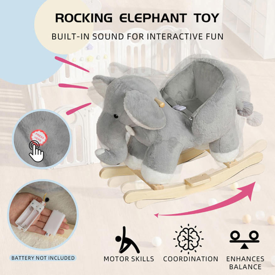 Kids Ride-On Rocking Horse Toy with Lullaby Song,Elephant Rocking Toy with Hand Puppets and Safety 54092172