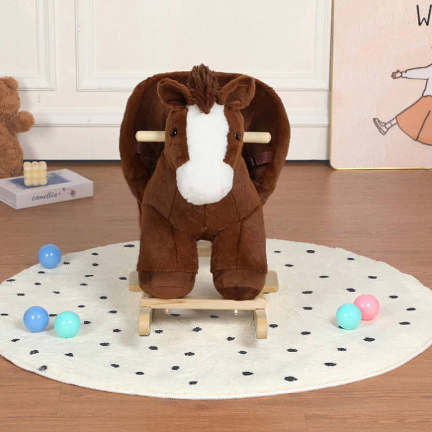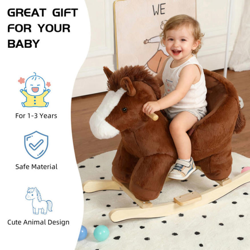 Kids Ride-On Rocking Horse Toy with Lullaby Song,Horse Rocking Toy with Hand Puppets and Safety Belt 08256957
