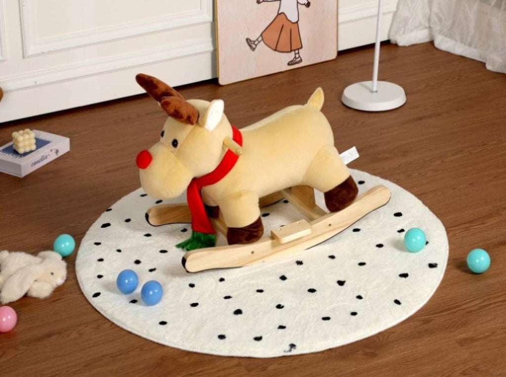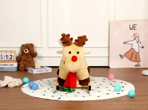 Kids Ride-On Rocking Horse Toy with Lullaby Song,Moose Rocking Toy with Hand Puppets and Safety Belt 43804255