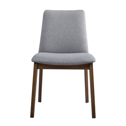 Complete your casual dining area with this set of two stylish side chairs. Finished in rich walnut, these chairs feature comfortable gray fabric upholstery on both the seat and back, with a padded seat cushion for added support. Perfect for everyday use and effortless style.