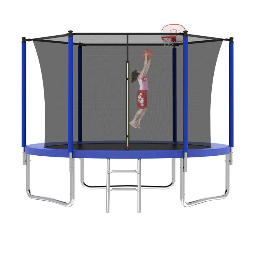 8FT Trampoline Blue for kids Outdoor with safety net and basketball hoop and Ladder.