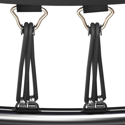 Safer than metal springs. Sometimes metal springs broke and burst out, it may hurt the user or people around the trampoline. Soft bungee cords never has such issue.