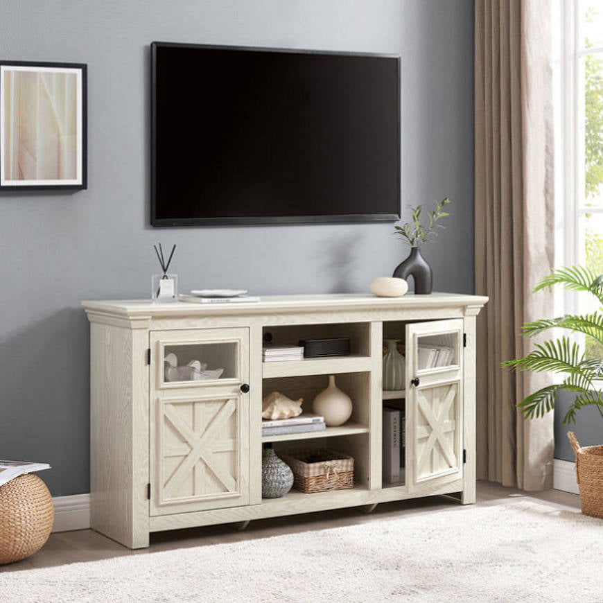 Fits TV up to 65''. Open shelves are great for consoles and gadgets.