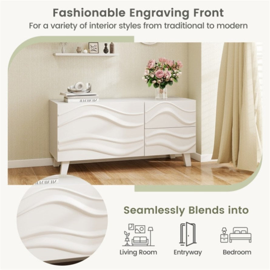 ● Fashionable Engraving Front: Elevate your decorations with the TV cabinet that showcases a delicate engraving on the front, adding a touch of elegance to any room. Its contemporary style blends seamlessly with both modern and traditional interiors.