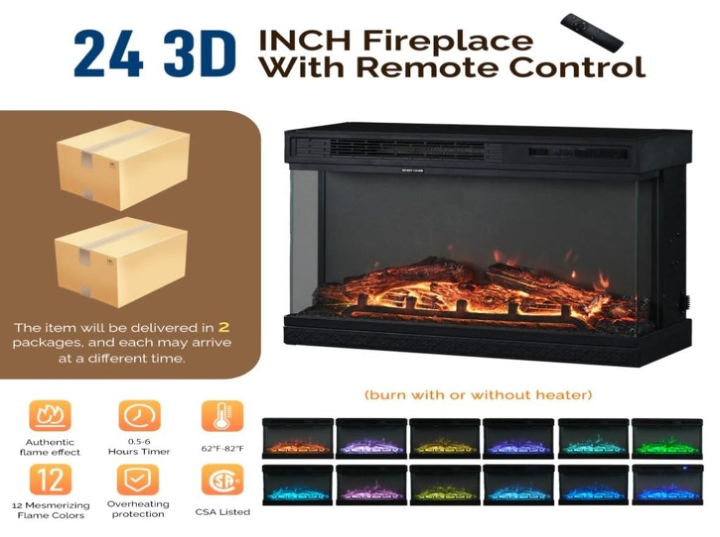 • Fireplace: Includes 25-inch Electric Fireplace Insert (Flame Effect & Heater)