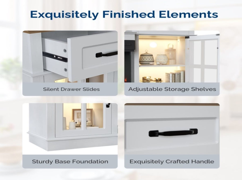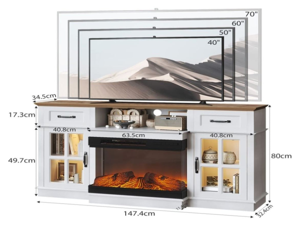 • Cozy Ambiance & Warmth: The built-in 25-inch fireplace offers adjustable flame effects and heating functions to create a comfortable atmosphere year-round.