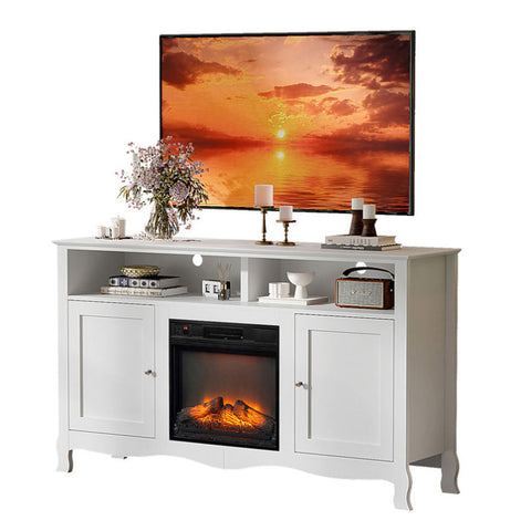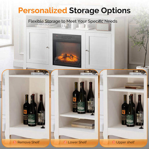Designed for modern interiors, this 58-inch media console features a crisp white finish over durable fiberboard (147.3×40×86cm). The split-door design with dual internal shelves offers flexible storage, while the precisely sized cavity accommodates 18-inch electric fireplace inserts. Clean lines and versatile styling make this unit an ideal centerpiece for contemporary living spaces, blending practical storage with sleek aesthetics.