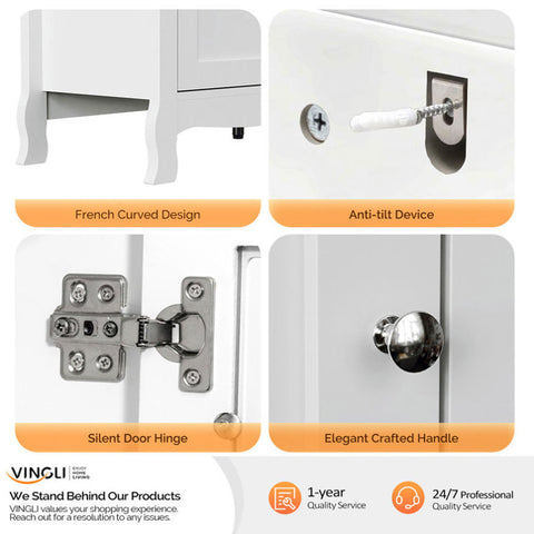 Modern White Finish: Durable fiberboard construction with clean white coating, measuring 147.3×40×86cm (58×15.7×33.8 inches)
