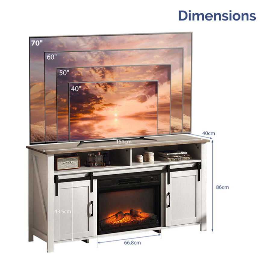 58" White Wash & Brown Top Barn Door Fireplace TV Stand for 23" Insert, Sliding Track Design 65998753